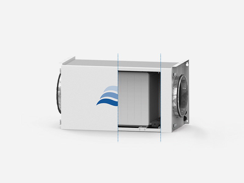 Das ästhetische Chassis aus pulverbeschichtetem Stahlblech dient zur Aufnahme des Vliespaketes und ist einfach in die Luftleitung zu integrieren. Für eine möglichst einfache Installation stehen passende Anschlussstücke in unterschiedlichen Abmessungen zur Verfügung. Die erforderlichen Wasseranschlüsse sind bereits fertig vormontiert.